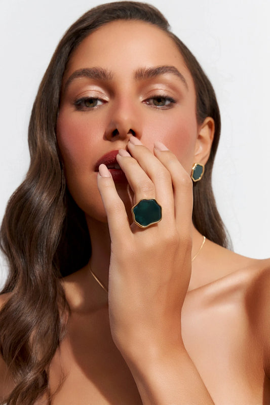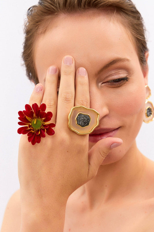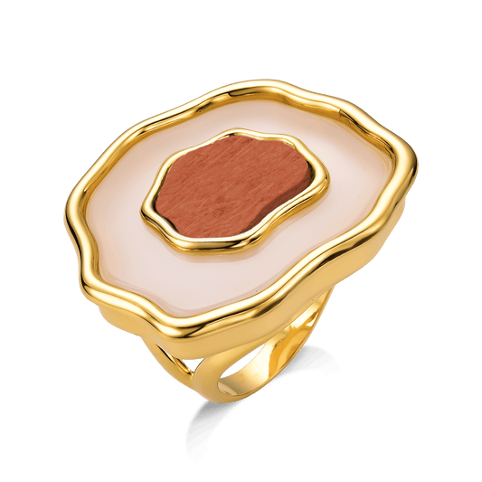 Anel Anthera - Ágata Vermelha e Drusa Ouro