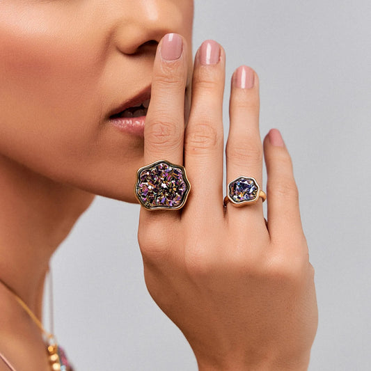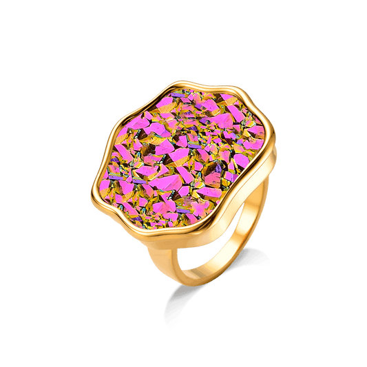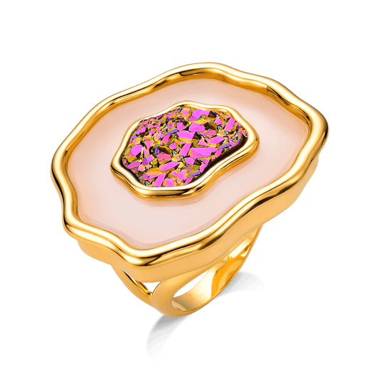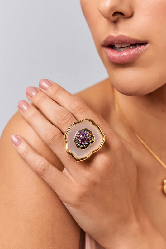 Anel Anthera - Ágata Branca e Drusa Multicolorida