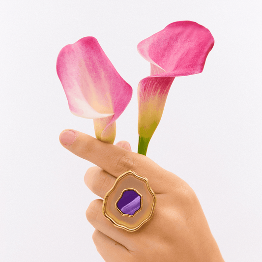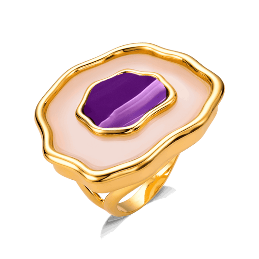 Anel Anthera - Ágata Branca e Ágata Roxa Listrada