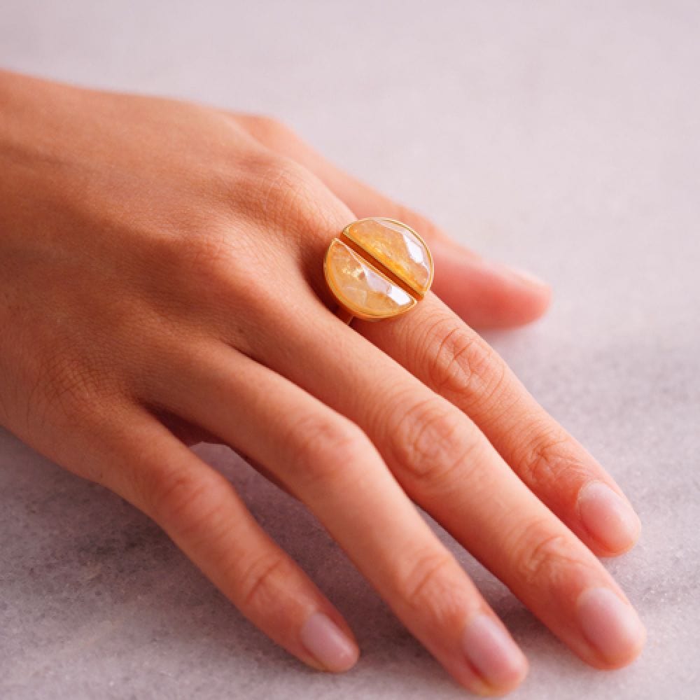 Use o Anel Arco para atrair prosperidade e luz. A joia traz a essência do Citrino, uma pedra conhecida por sua energia solar, alegria e abundância, em um sofisticado Banho de Ouro 18K. Sua tonalidade vibrante e quente é perfeita para expressar sua essência com confiança e elegância no dia a dia.