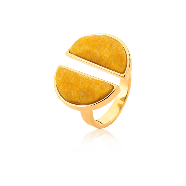 Use o Anel Arco para irradiar a luz da autoestima. A joia traz a essência do Feldspato Amarelo, uma pedra conhecida por sua energia de alegria e confiança, em um sofisticado Banho de Ouro 18K. O tom vibrante e solar do Feldspato Amarelo é perfeito para expressar sua força e felicidade com elegância.