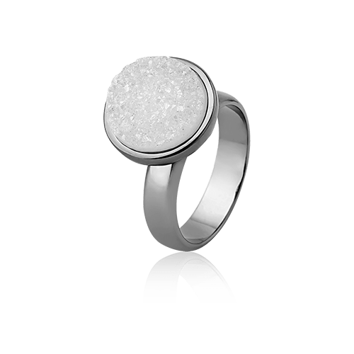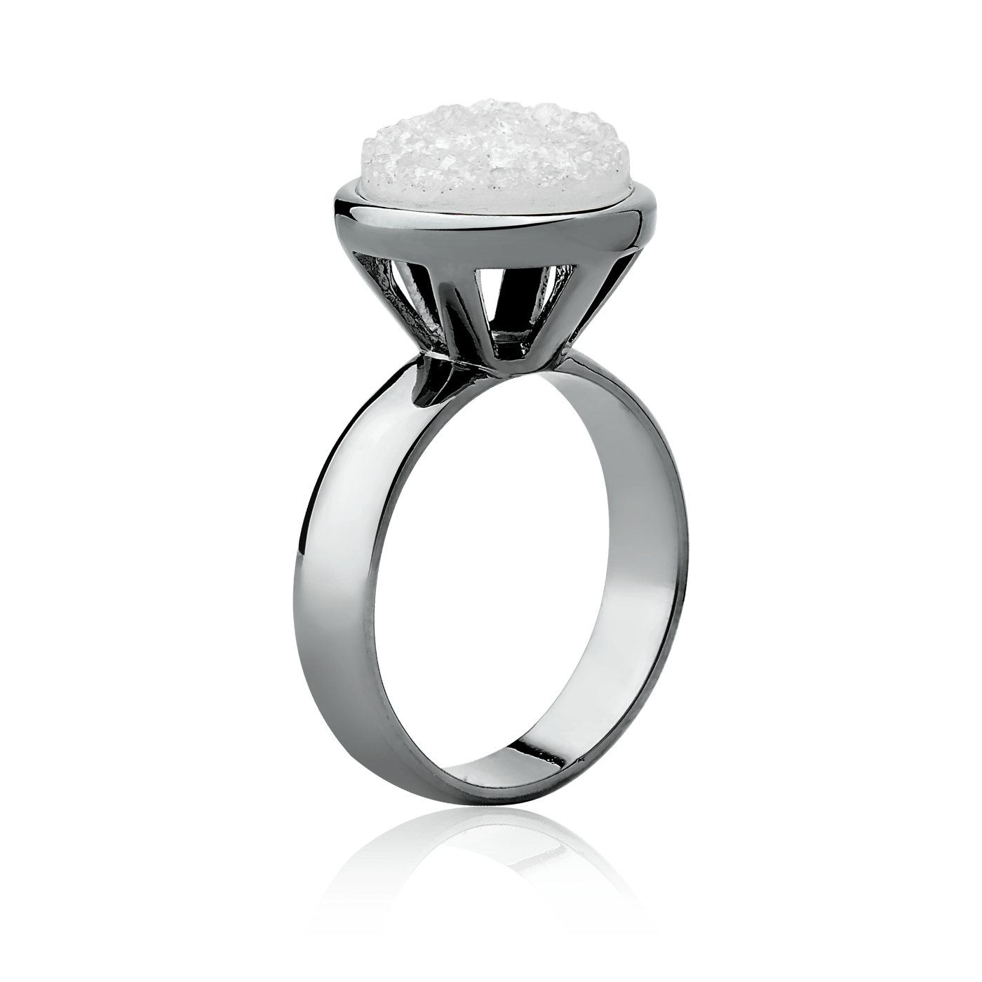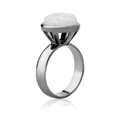 O Anel Classic Drusa Branca remete a um solitário onde a pedra é o destaque principal. Representa a clareza e a harmonia, e une a beleza da Drusa Branca com o sofisticado Banho de Ródio Negro.