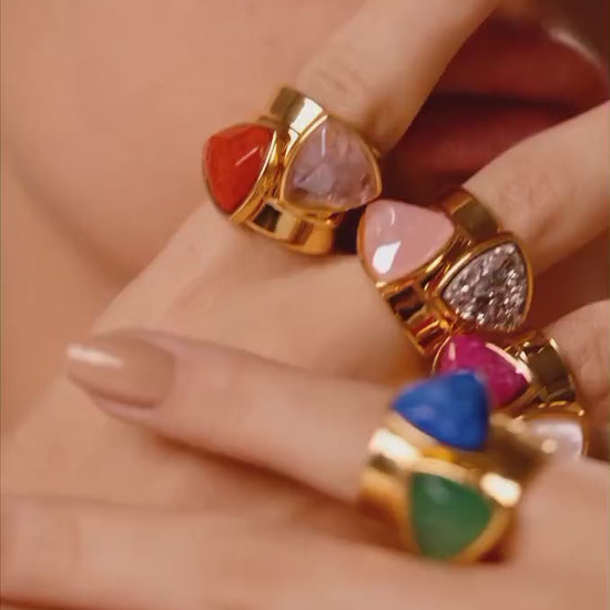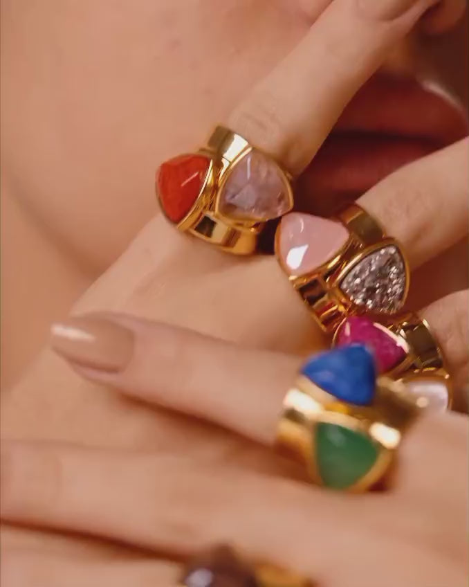Use o Anel Equilíbrio com Ágata Azul Céu em Banho de Ouro 18K para atrair a paz interior e a coragem. Uma peça que une sofisticação e a poderosa energia das pedras naturais.