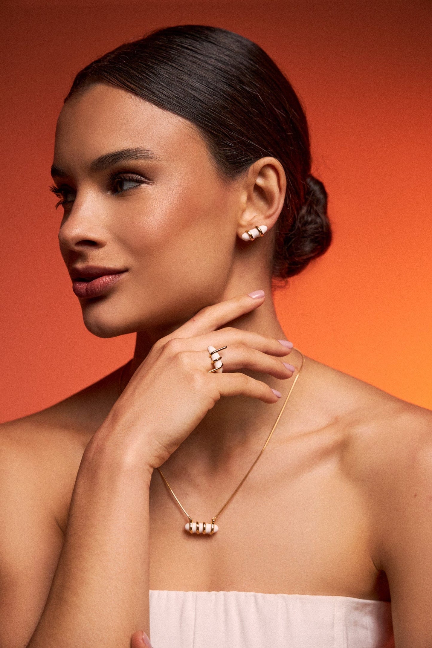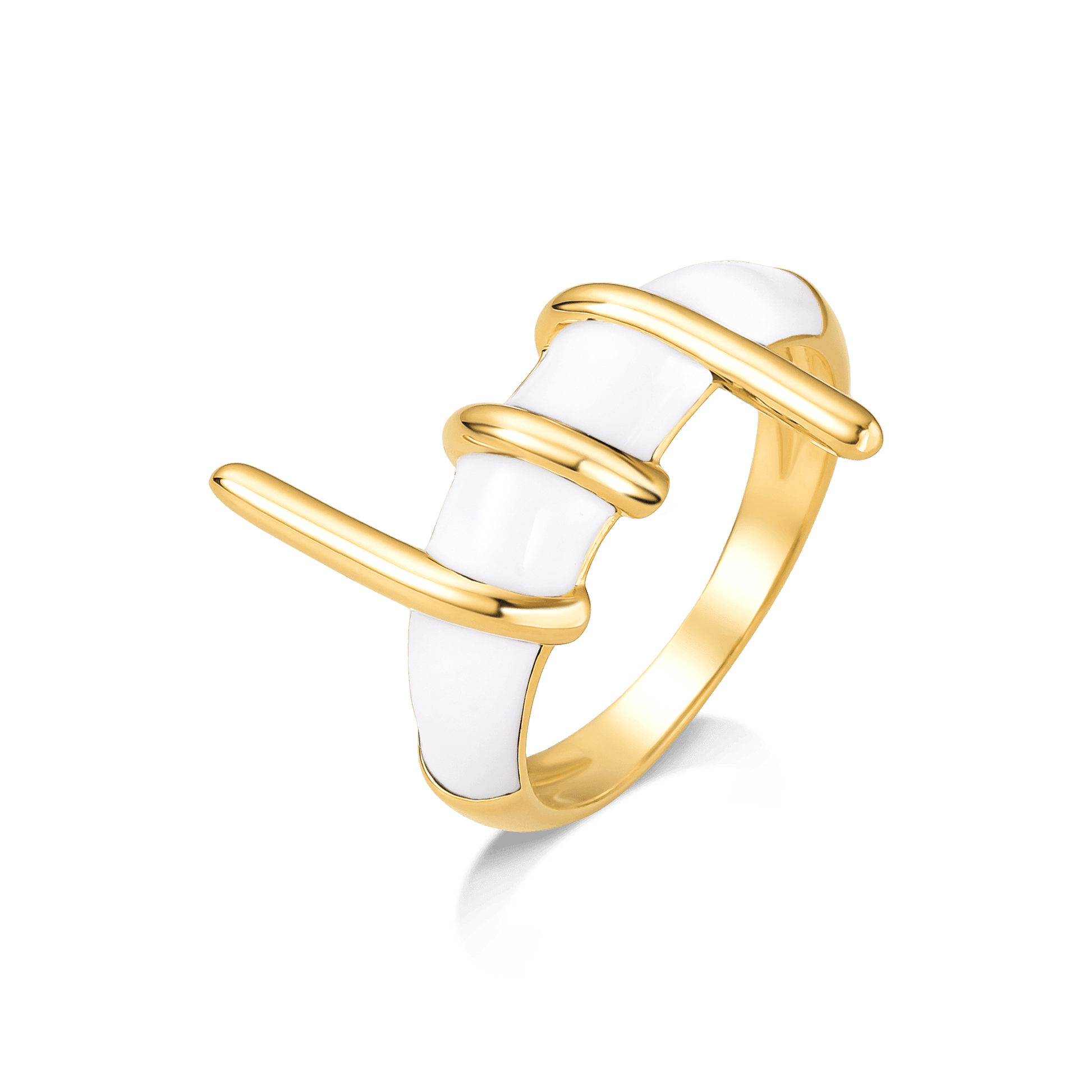 O Anel Trama com Esmaltação Branca é um acessório minimalista e atemporal da Coleção Macramê. O anel, em Banho de Ouro 18K, possui uma base esmaltada que destaca sua simplicidade sofisticada.