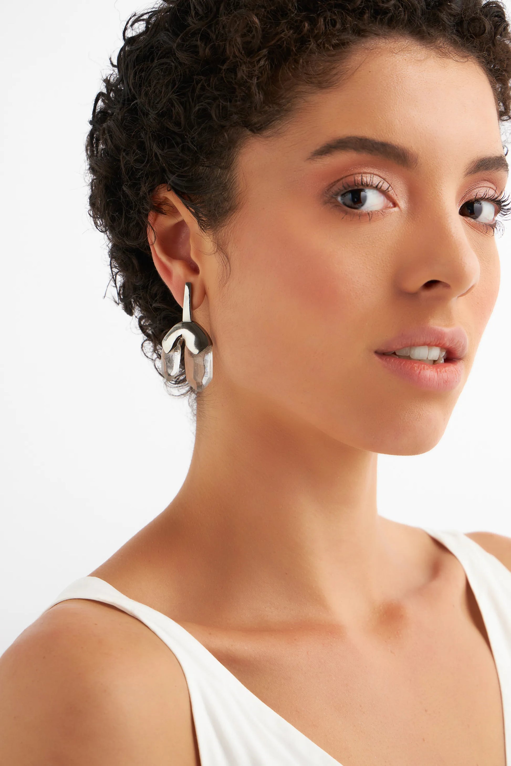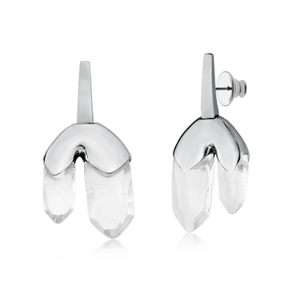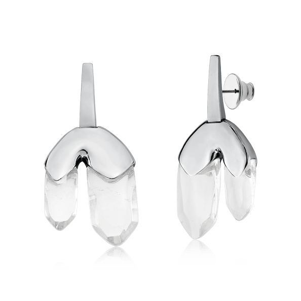 Brinco Élémentaire Cristal de Rocha Banhado a Ródio Negro