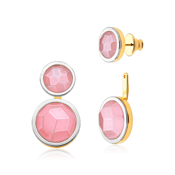 Brinco Nobre Quartzo Rosa Multifacetado Banhado Ouro 18k