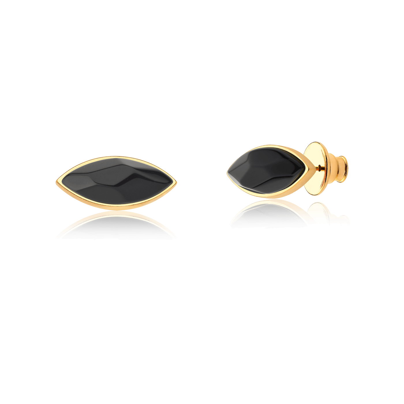 Brinco Pétala Obsidiana Negra Banhado a Ouro 18k