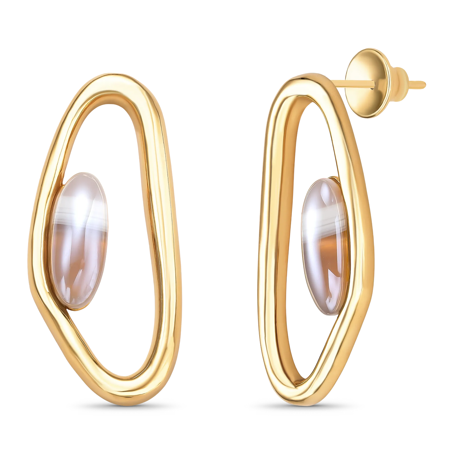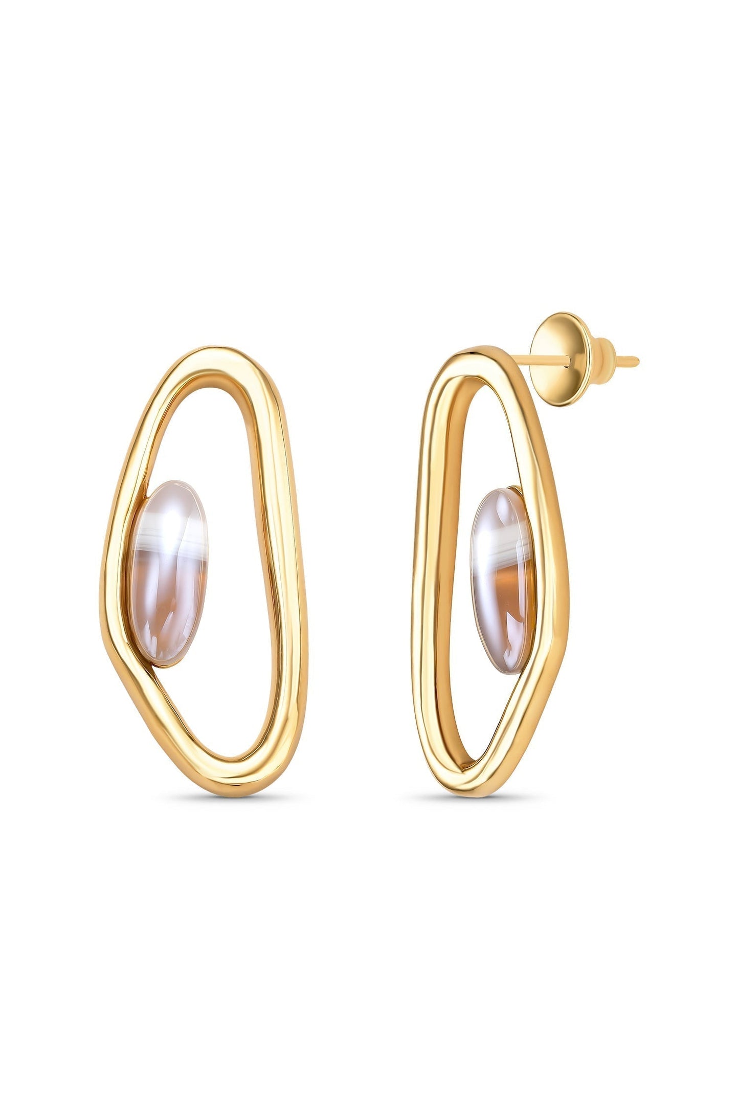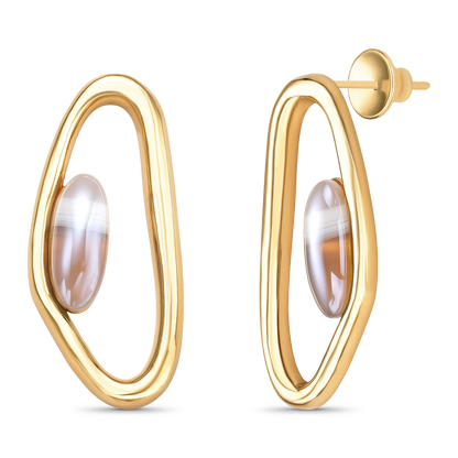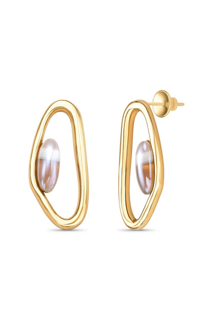 Brinco Reconectar Ágata Cinza Listrada em Banho de Ouro 18K