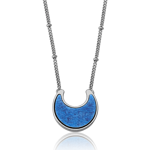 O Colar Lua Feldspato Azul Anil em suas formas arredondadas consegue ser um item atemporal e de muito estilo. Representa a autoestima.
