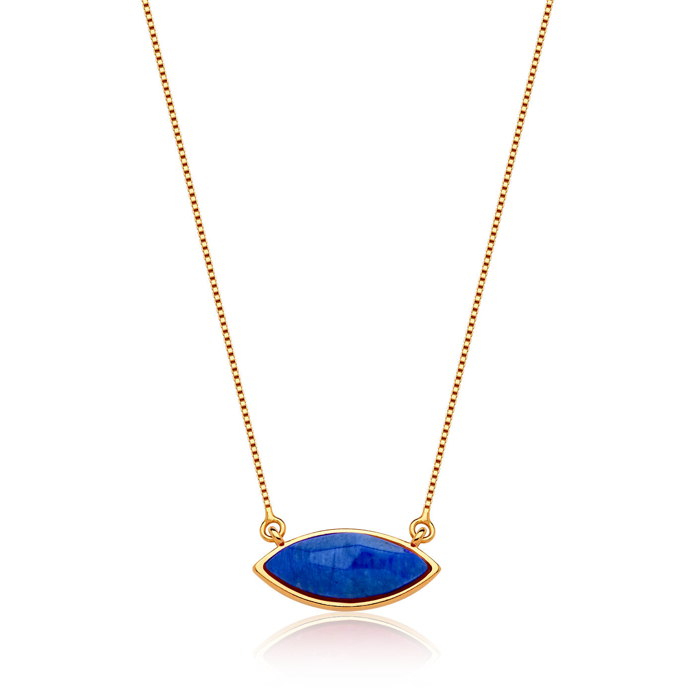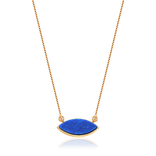 Colar Pétala Feldspato Azul Anil Banhado a Ouro 18k