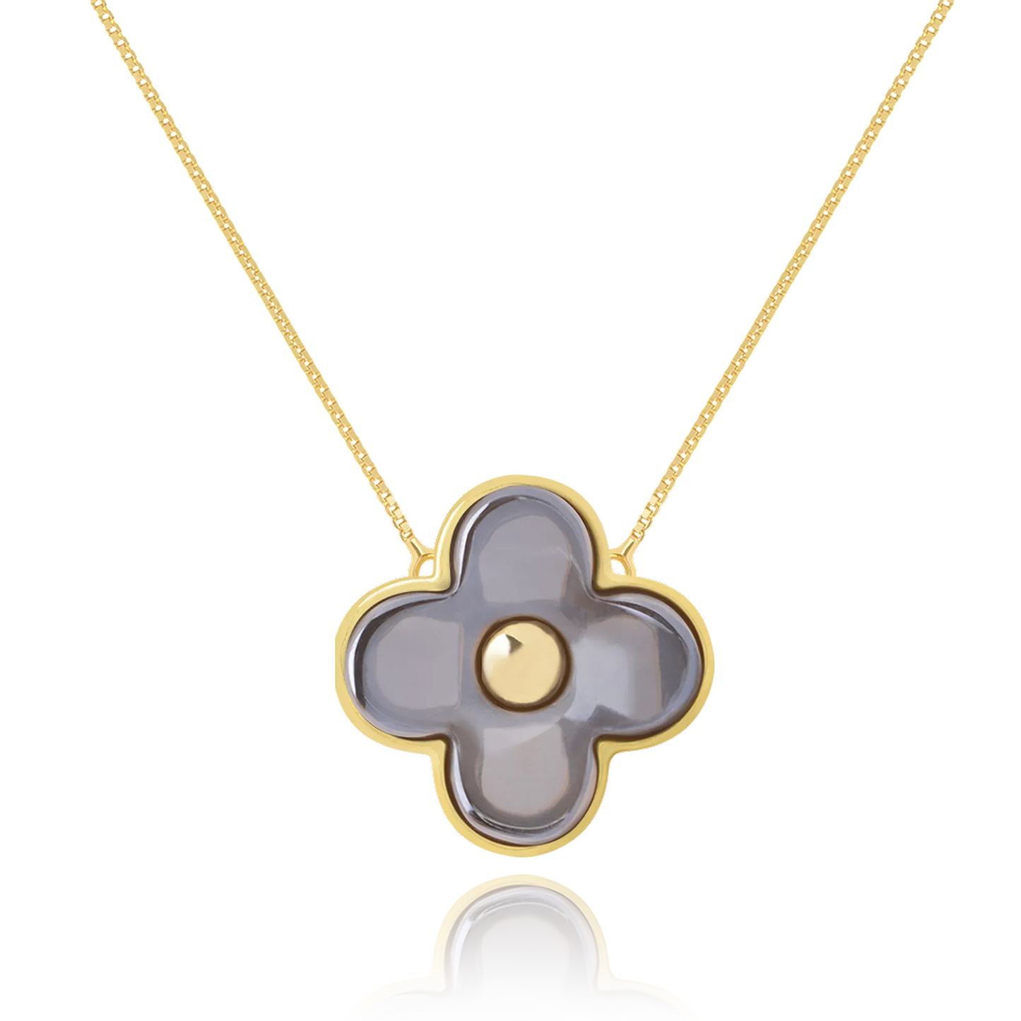 Colar Radiante Quartzo Fume Perolizada Banhado a Ouro 18k