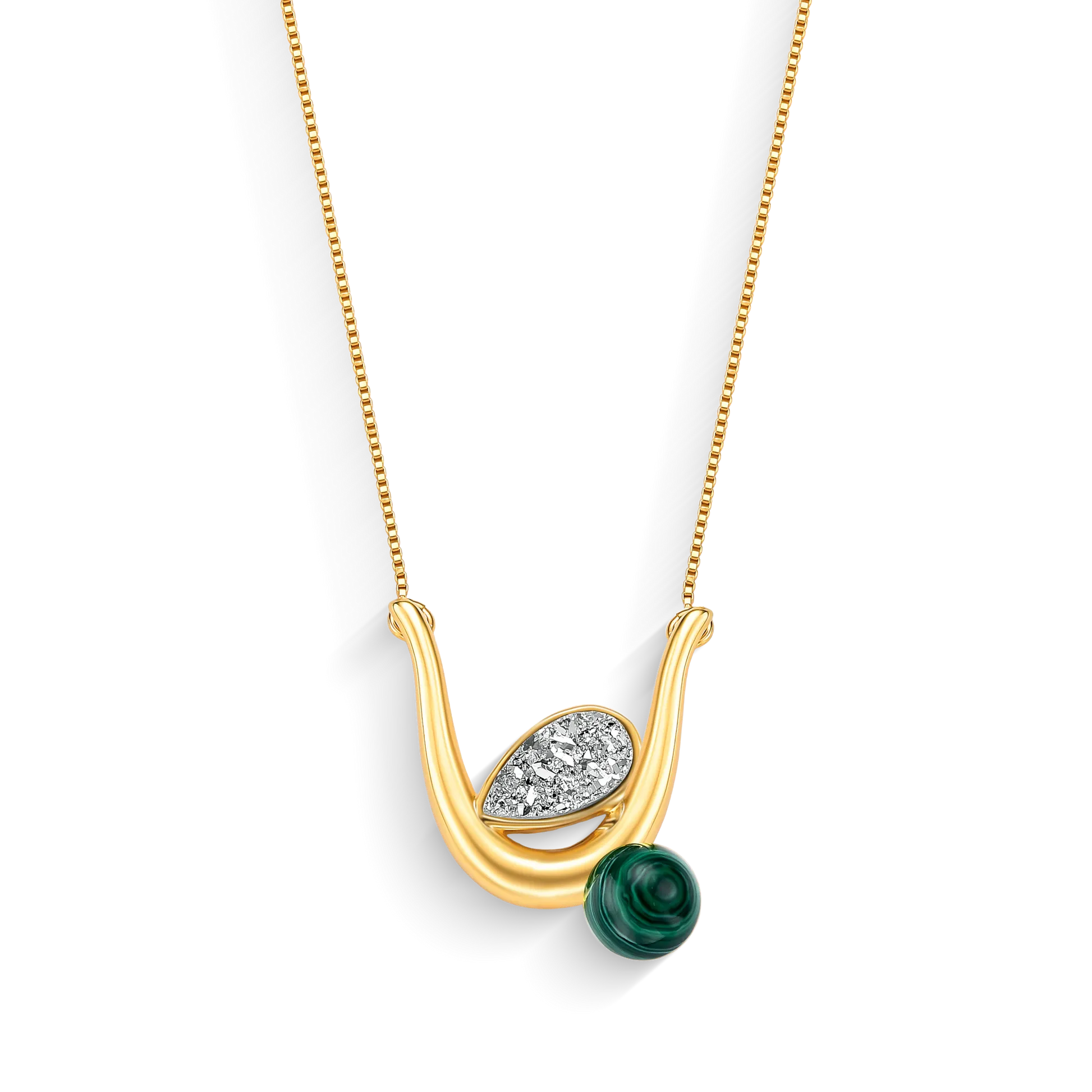 Use o Colar Recomeço com Malaquita e Drusa Platina em Banho de Ouro 18K para transformação e fortalecer sua intuição.