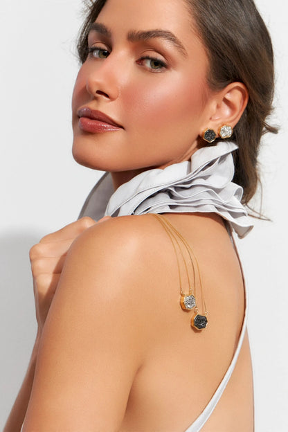 Use o Colar Sita com Drusa Platina em Banho de Ouro 18 K para renovar a sua energia e equilíbrio emocional.