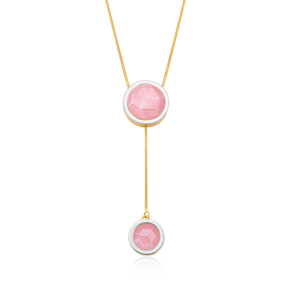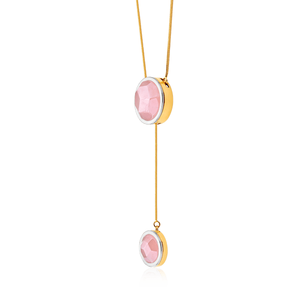 Colar Solene Quartzo Rosa Multifacetado Banhado a ouro 18k