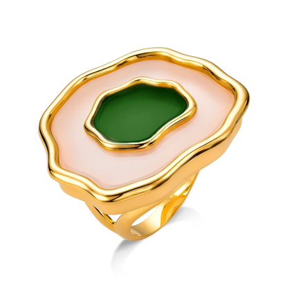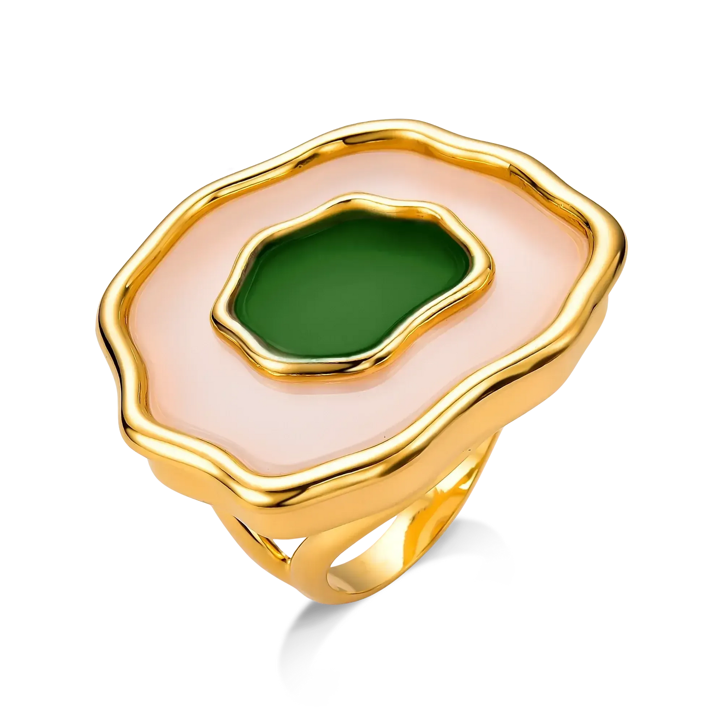 O Anel Anthera é uma homenagem às forças femininas da terra. Combinando ágata branca e verde natural, ele simboliza a união entre proteção e crescimento emocional. Seu design moderno e minimalista permite uso diário com toque especial.
